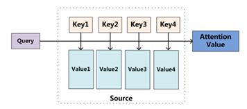 下面我们来介绍自注意力机制。自注意力机制是注意力机制的一种。在自注意力机制中,注意力集中在上述公式中Source的内部元素,如图2-3。而在计算方式上,与传统注意力机制完全相同。在Transformer中,自注意力机制得到了应用,因为Transformer需要判断序列中词与词之间的关系强度,自注意力机制正符合这一点。