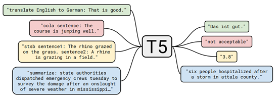 比如,自然语言处理中常见的翻译任务,在T5模型中,只需要在给模型输入的部分加上前缀:“给我从英语翻译成汉语”,然后再加上要翻译的内容即可。通过这样的方式,就可以将NLP任务都转成Text-to-Text的形式,这样,就可以用同样的模型、同样的损失函数、同样的训练过程、同样的解码过程来完成所有的NLP任务。本文对T5模型的介绍就到这里,更多内容可以阅读原论文。