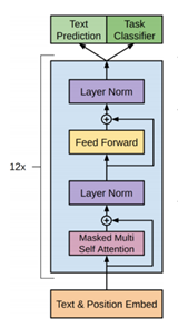 GPT的核心部分是N=12的Transformer Decoder结构,如图4-2。