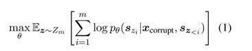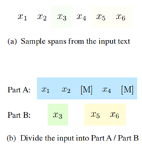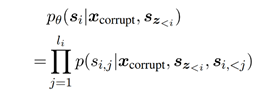 其中x~corrupt~就是partA,即带MASK部分的句子,s~z<i~指的是partB的部分,不过看到它只用了z<i的部分,也就是单向的,即自回归的。不过考虑到span之间可能也有关系,所以s~z~的顺序是随机打乱的。如图5-2。